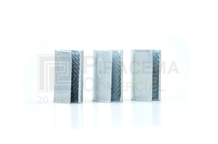 O selo Pet de 13 mm ou 16 mm é utilizado para arqueações com a fita Pet. A arqueação é realizada com o Selador Pet e o Esticador Pet.